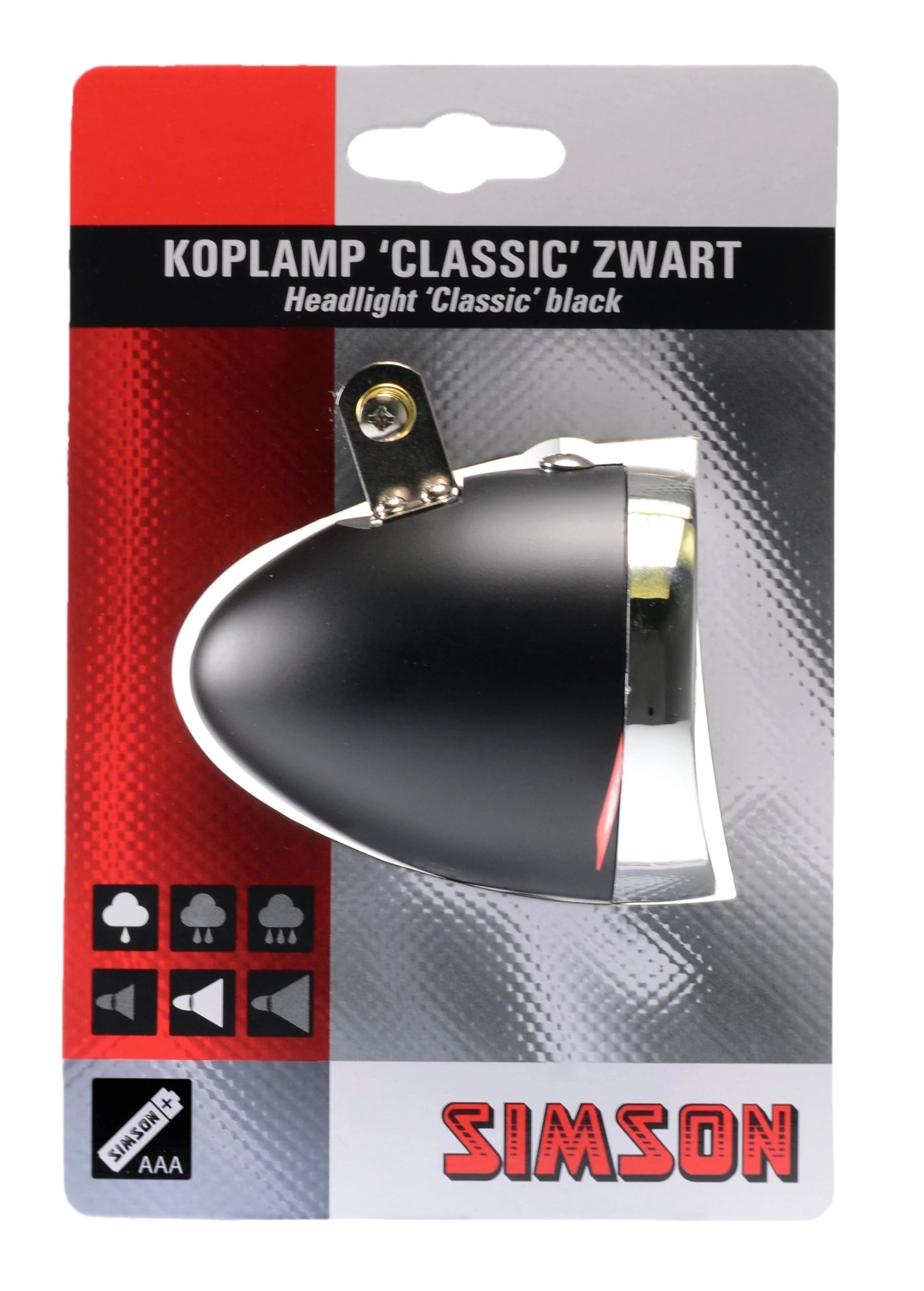 Simson LED Batterijkoplamp Classic Zwart met Chroom