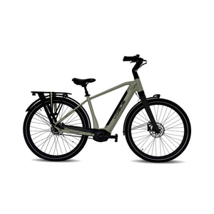 Vogue Prestige Cement Grijs – Elektrische Herenfiets met V-snaar, 80Nm Middenmotor en Hydraulische Schijfremmen